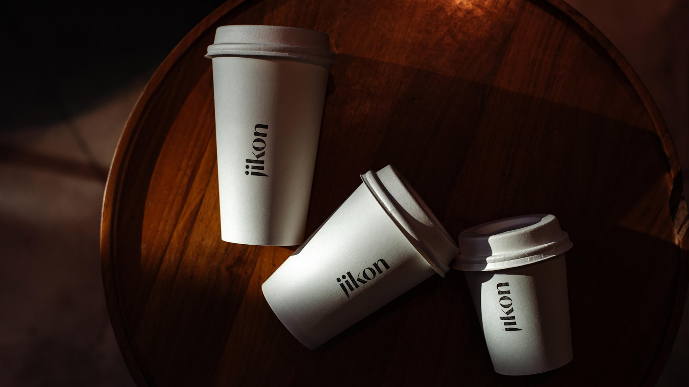 Jikon — это концептуальный бутик одежды и кофейня. Владелец магазина вдохновлён Японией и стремился сформировать ассортимент преимущественно из японских брендов. Поэтому в качестве названия было выбрано японское слово Jikon, которое является синонимом латинского выражения Carpe Diem («лови момент», «живи здесь и сейчас»). Первая буква логотипа напоминает каллиграфическую кисть и поставленную ею точку. Вся остальная концепция фирменного стиля строится вокруг идеи объединения магазина одежды и кофейни в единое цельное пространство и бренд.
